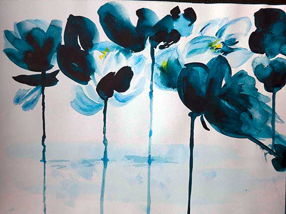 Zart und zerbrechlich oder dunkel und dicht fließt eine Stimmung auf das Papier.